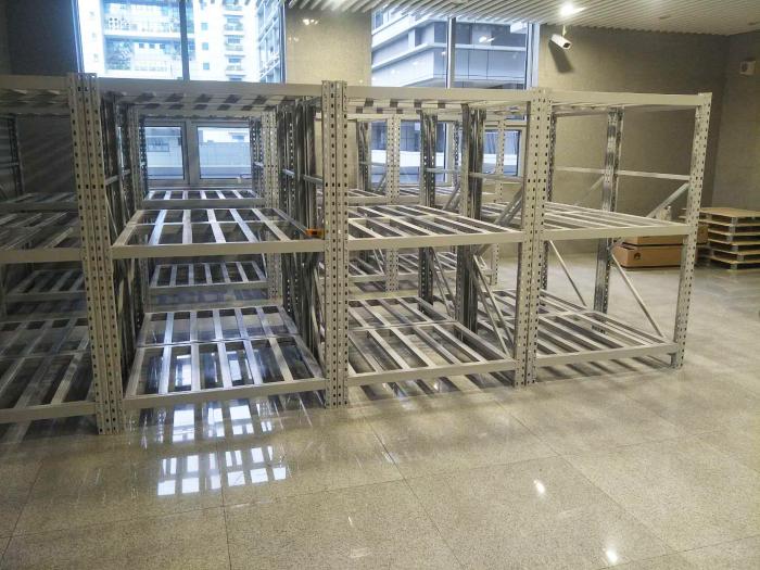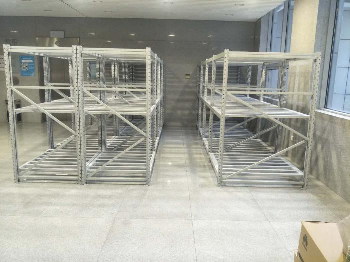 隔挡中型货架也是中型货架的一种, 办公室, 商铺、仓库较为常用,放些较轻物品。中型货架自由拆装方便,不需要焊接,取货方便,利用空间大, 能够节省很大的空间,通用性较强。下面是某银行定制的隔挡中型货架。